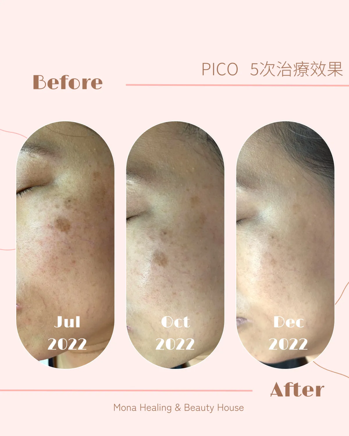 精準針對表皮至真皮層色素,不傷周邊皮膚,大幅降低反黑機會。